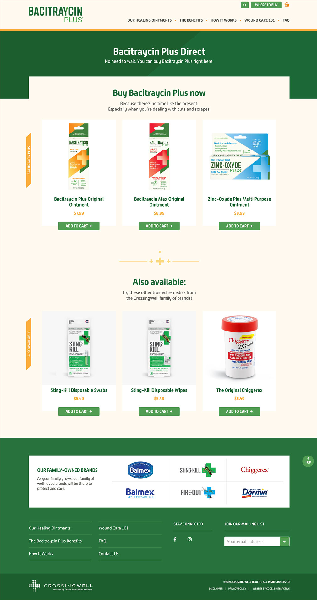 While Bacitraycin Plus does have a growing national distribution footprint via a variety of major retailers, it still may not be as readily available as some high-profile competing brands. So we added an e-commerce component to this website in order to augment brick-and-mortar distribution with Direct To Consumer sales.