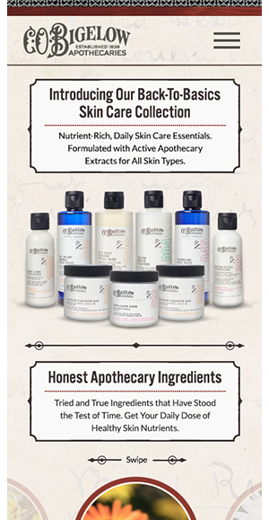 C.O. Bigelow is America’s oldest apothecary, and the makers of a world-renowned line of skincare products. We made this landing to page to help promote the launch of a new Face Care line.