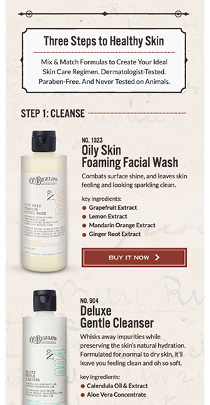 The C.O. Bigelow Face Care line offers ‘Mix & Match’ formulas that allow consumers to create the personal regimen that works best for them. We offered clear explanations of when and how to use each product, as well as what type of skin each is best suited for.
