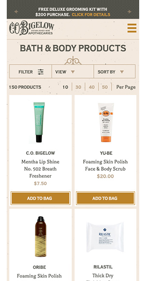 We began the Bigelow Chemists project with a UX audit of the previous website, which illuminated a number of dead ends and black holes. We also discovered numerous brands and products that were receiving very little traffic or sales. We used this intelligence to create a variety of new features and user pathways that helped bring under-performing products to the surface and broaden the appeal and effectiveness of the website.