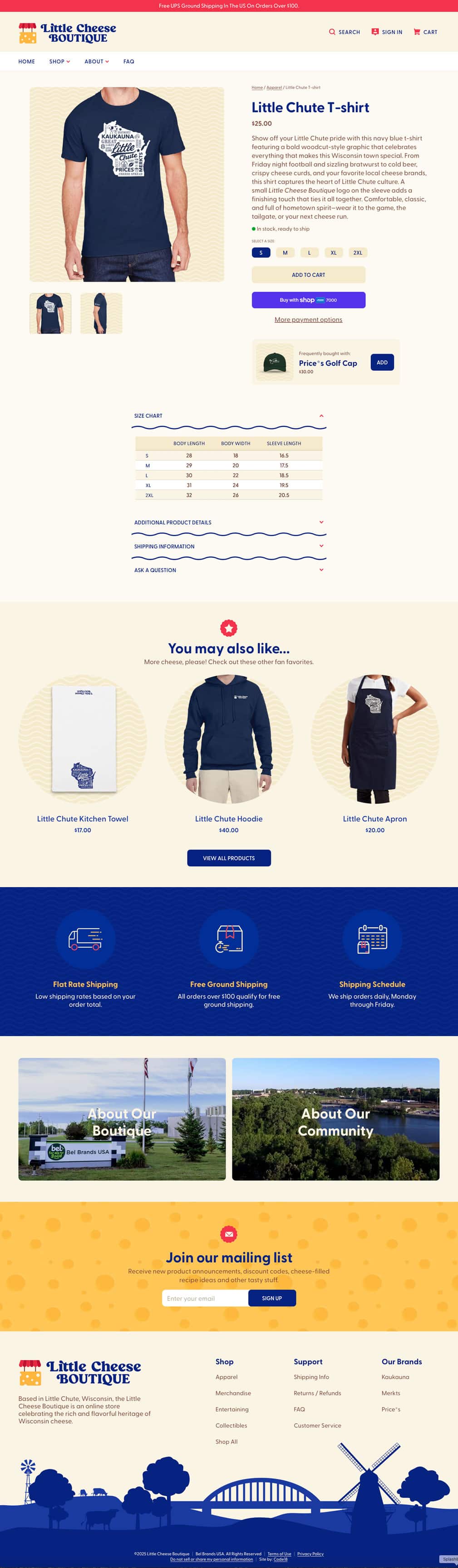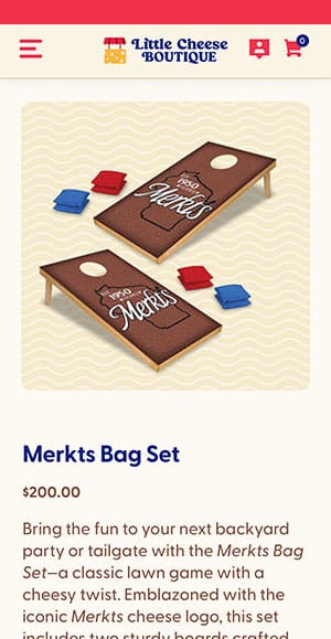 We designed and built a fully custom Shopify theme for the Little Cheese Boutique. This allows a level of creative control not possible with stock themes, as well as back-end flexibility for fulfillment, customer service, and other administrative functions.