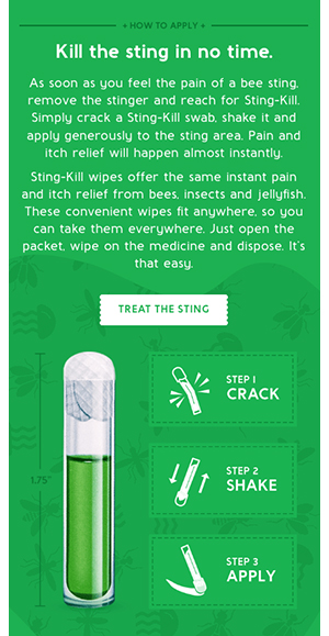 While Sting-Kill does have a significant distribution footprint via a variety of major retailers, it still may not be immediately available in all markets. So we added e-commerce to this site in order to augment brick-and-mortar distribution with Direct To Consumer sales, and we also encourage consumers to think ahead and keep Sting-Kill on hand at all times.