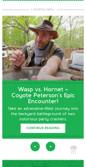 Popular outdoor adventurist and YouTube personality Coyote Peterson has prominently featured Sting-Kill in several of his videos. His videos featuring the brand have accumulated over 70 million views to date!