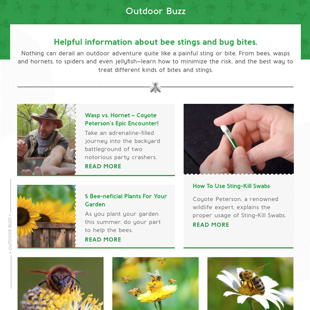 The Sting-Kill blog provides helpful information for outdoor enthusiasts and neophytes alike. Evergreen content about identifying bees, avoiding stings, and backyard safety help draw traffic to the brand’s website.