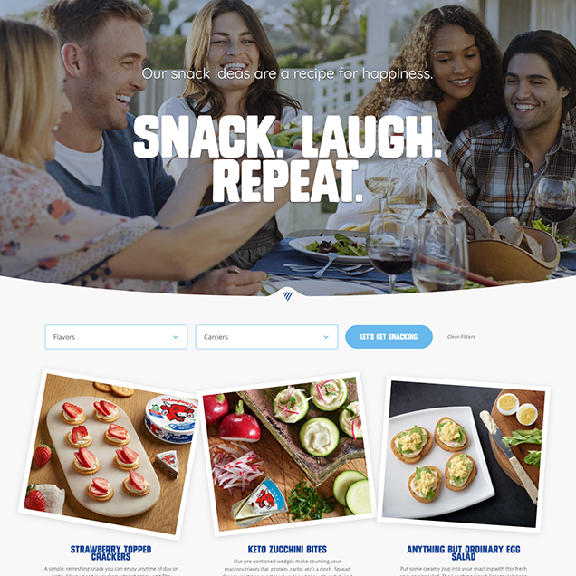 The website features over 130 colorful snack ideas and simple recipes which provide inspiration for fun and tasty ways to enjoy The Laughing Cow cheese wedges, and attract significant organic traffic via search.